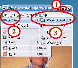 (2) When in the "KView" window at top left, one clicks on  "File" and then on "Open..." one can select which picture file should be viewed.